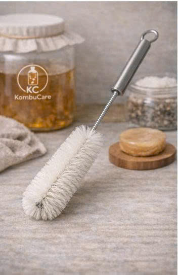 Cọ rửa bình chuyên dụng giúp làm sạch sâu bên trong các bình thủy tinh ủ Kombucha – nơi tay thường không thể chạm tới.